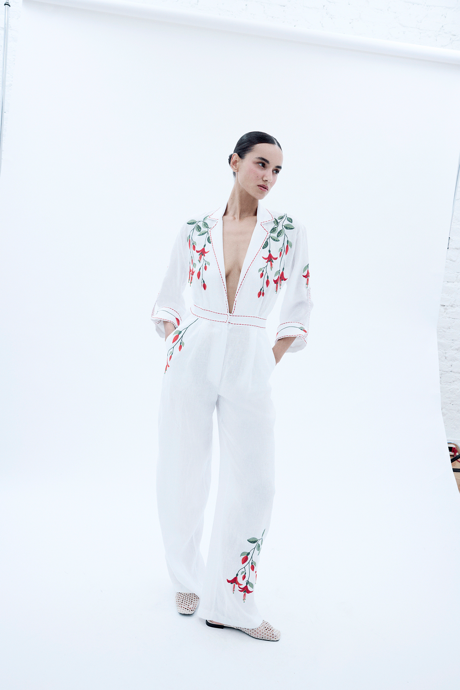 Color: WHITE&RED FLOWER EMBR.&BEAD