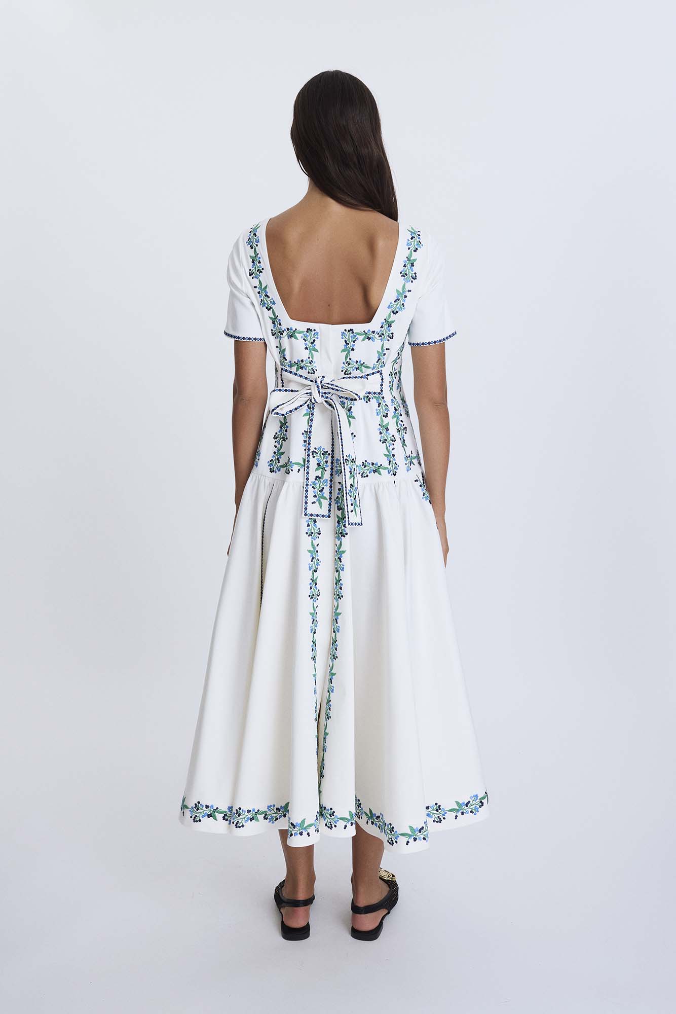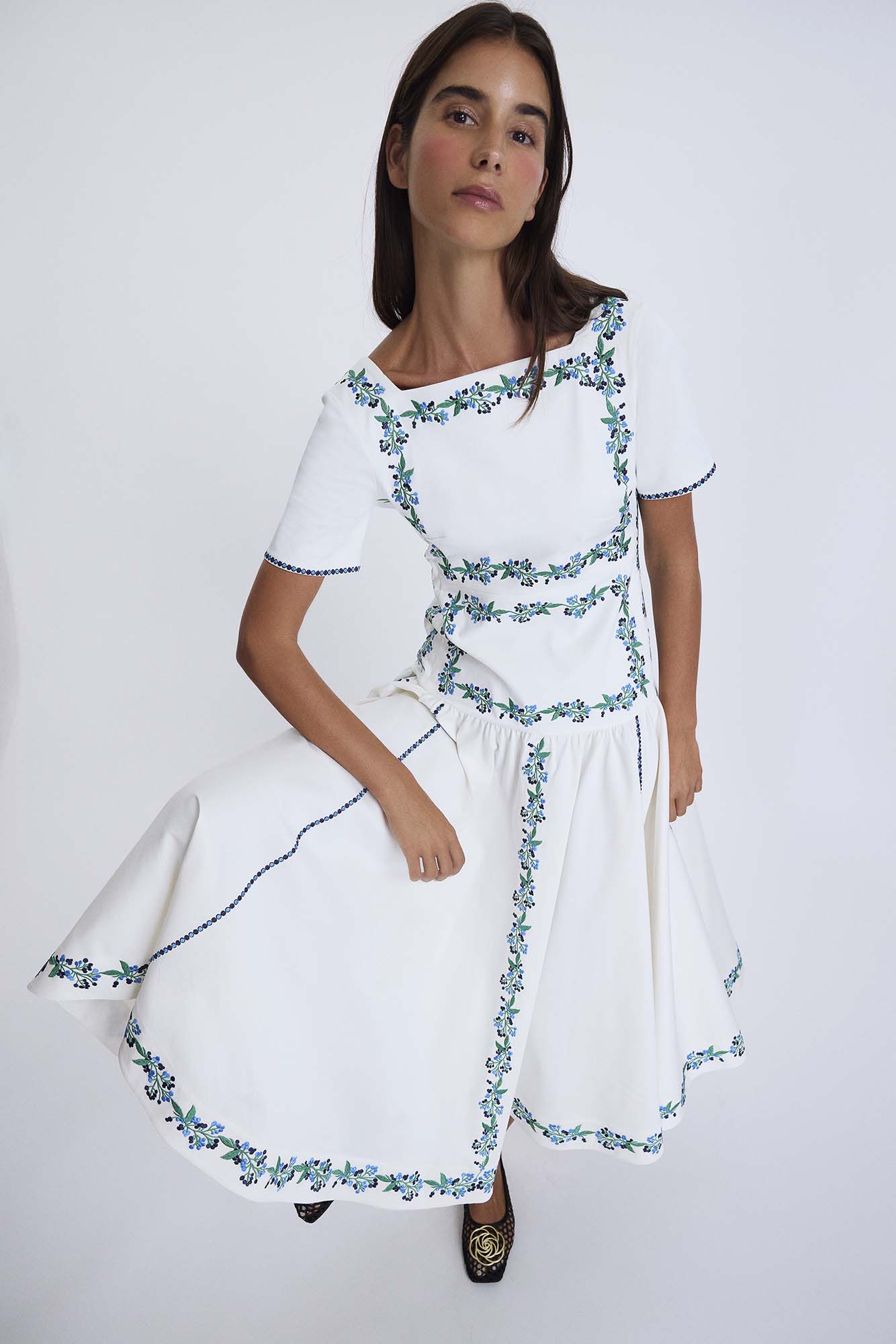 KALP İŞLEMELİ KARE YAKA ELBİSE